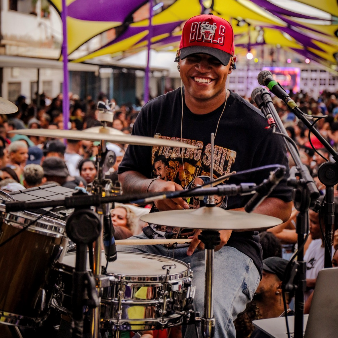 Erick Gama construiu sua identidade entre igrejas, estrada, estúdio e grandes produções ao vivo. Hoje, sua assinatura rítmica acompanha artistas como Lexa e Naldo Benny com precisão cirúrgica, peso contemporâneo e controle absoluto de palco.